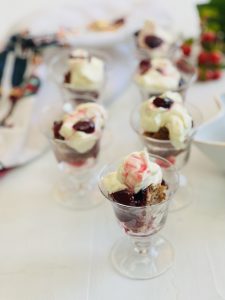 Vasitos de pan de pascua, cerezas y crema