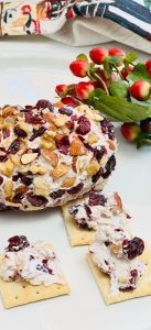 Rollo queso crema, queso azúl, pistacho y cranberries