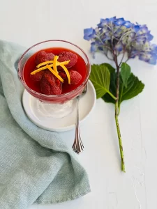 Un postre preparado con frutillas, jugo de naranja y grand manier. Se dice que era