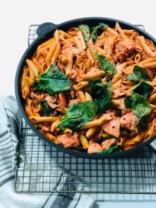 Una receta diferente con trucha, tomates y pasta. Un plato diferente, entretenido y fácil de