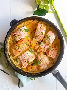 Una receta de pescado al estilo tailandés que lleva leche de coco, curry rojo, sriracha